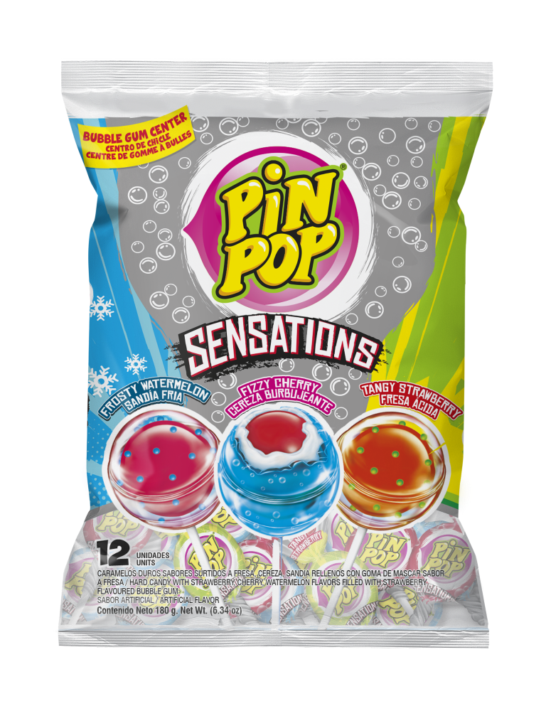 A tasty chewing gum lollipop with 3 different flavours(cherry, strawberry, watermelon)